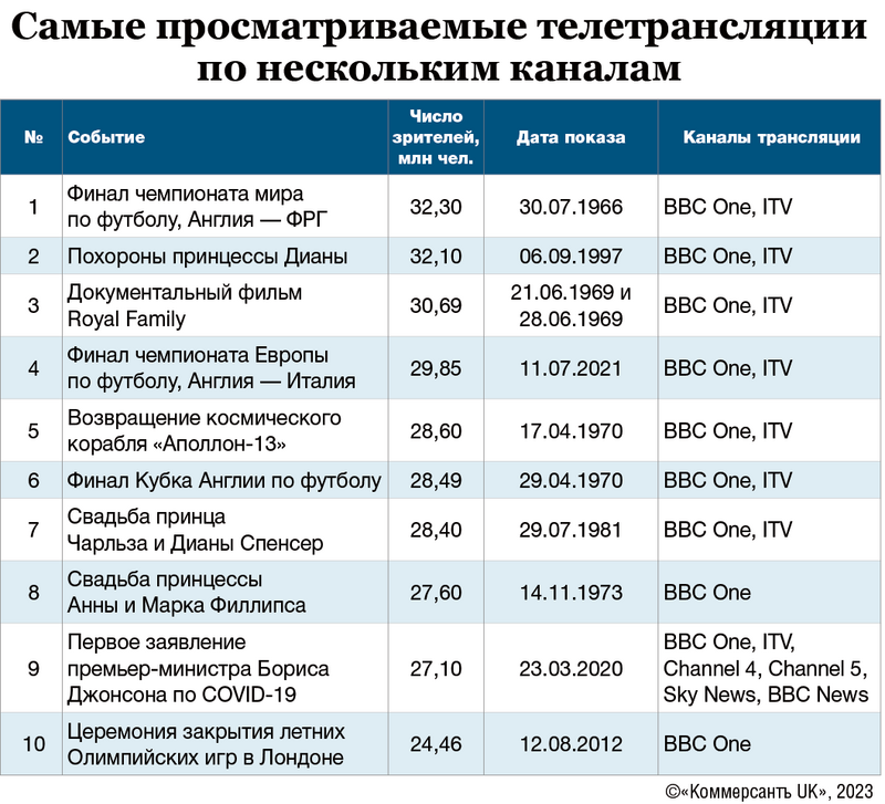 Что касается прямых трансляций, то тут никаких сюрпризов: внимание телезрителей привлекают знаковые события из мира спорта, науки и жизни королевской семьи.
