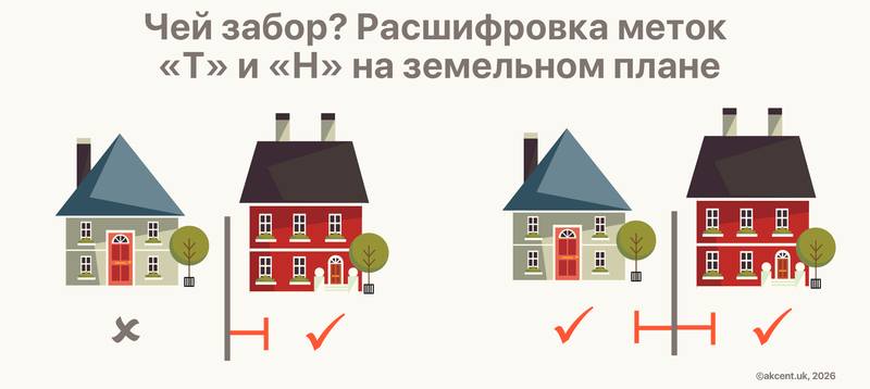 Существует распространенное мнение, что в Британии есть негласное правило левой руки (left-hand rule) для террасных домов: если стоять лицом к вашему дому, левый забор ваш. В реальности такое правило не закреплено ни в одном акте, и ответственность за ограждение может быть указана в документах на недвижимость Land Registry с помощью так называемых T-marks: в чью сторону на плане направлена шляпка буквы Т, тот и владеет забором, а значит, отвечает за его обслуживание, в том числе ремонт. Любопытно, кстати, что иметь забор — это не автоматическое требование: при желании хозяин может запросто его снести и не ставить новый. С одной стороны, невладельцу повезло сэкономить (средняя стоимость ремонта деревянного забора, согласно анализу сайта CheckaTrade, составляет 940 фунтов). С другой стороны, без разрешения владельца сосед не может даже покрасить свою сторону забора, повесить решетку для вьющихся растений или, например, установить дополнительные элементы для большей приватности.